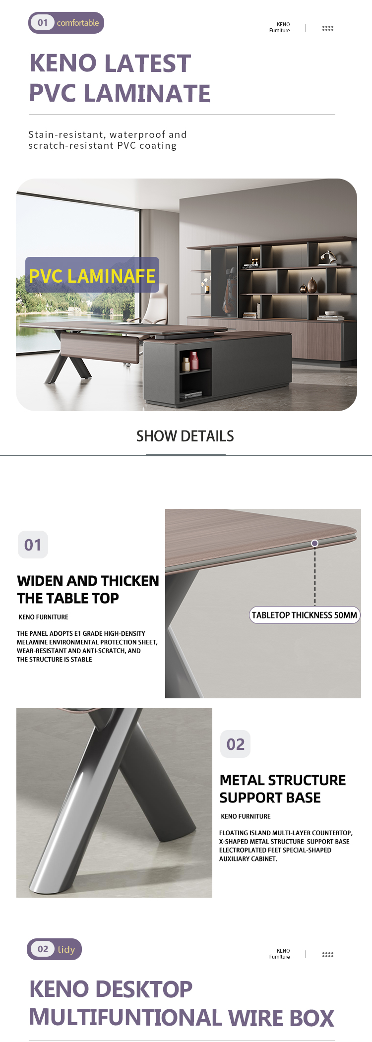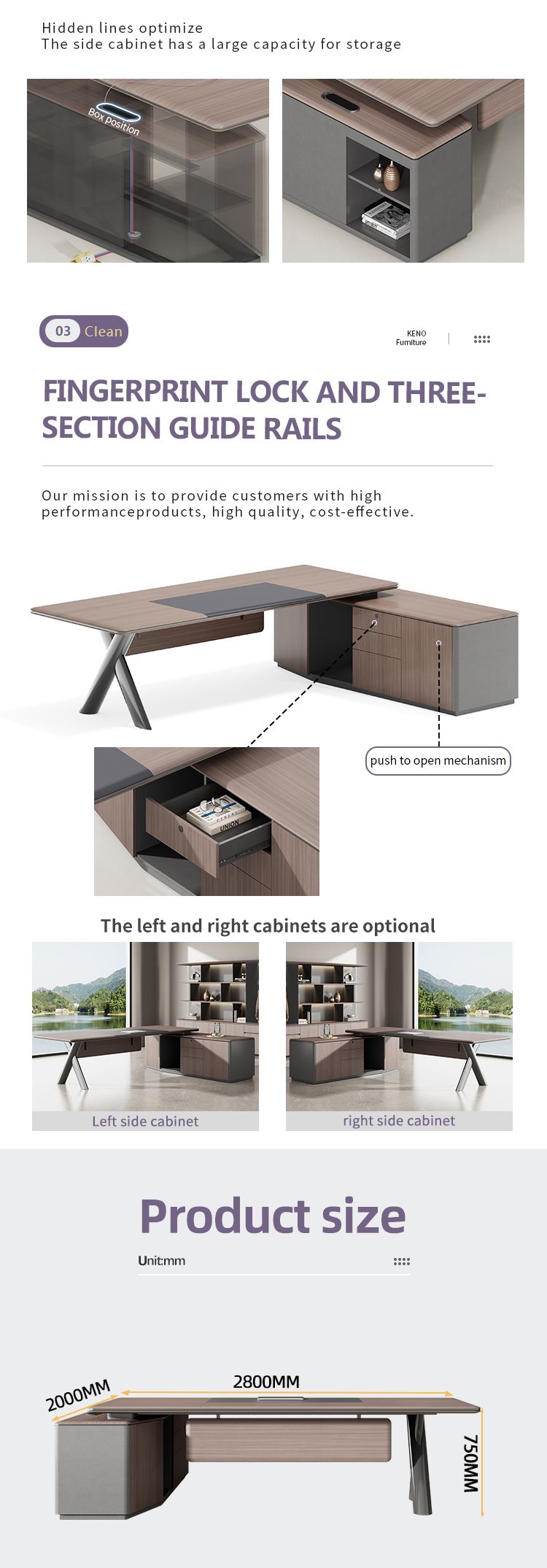File Cabinet Office Furniture Set Luxury CEO Office Desk Dark Gray with Lockable Drawer