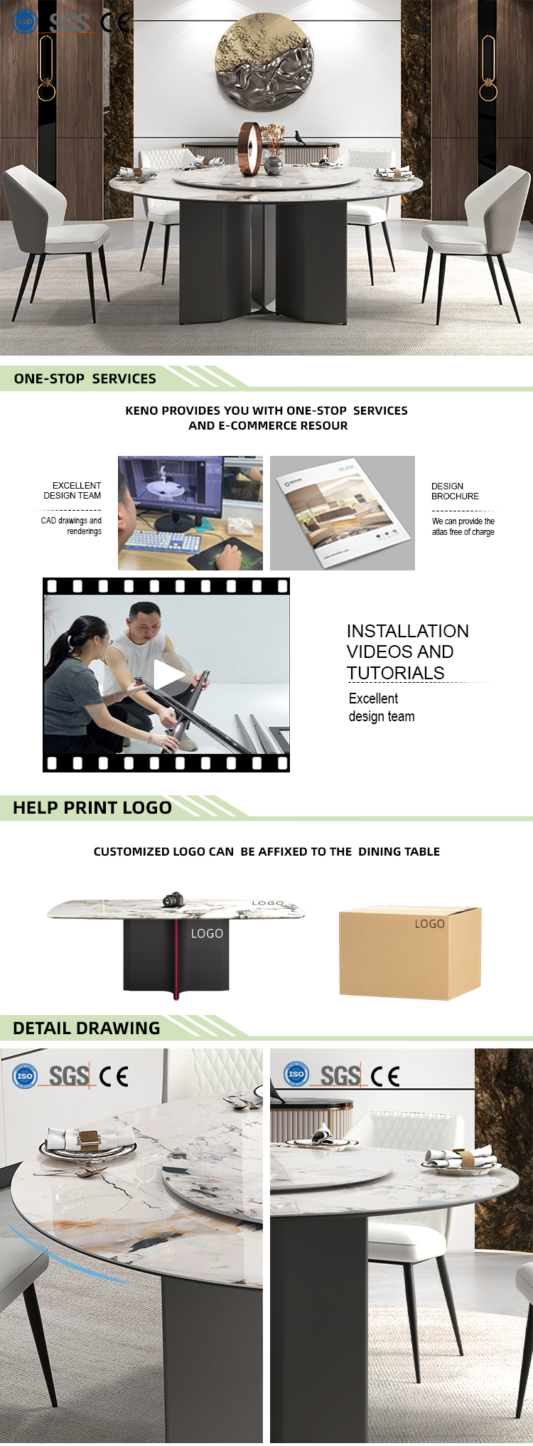 KENO Light Luxury Cozy Romantic Round Turntable Slate Dining Table with Domestic Use