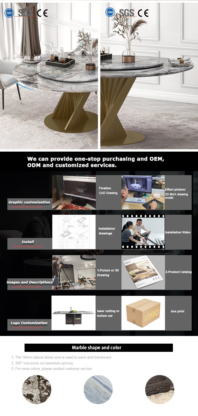 Metal Golden Base 6 Seater Round Marble Dining Table with Inbuilt Lazy Susan