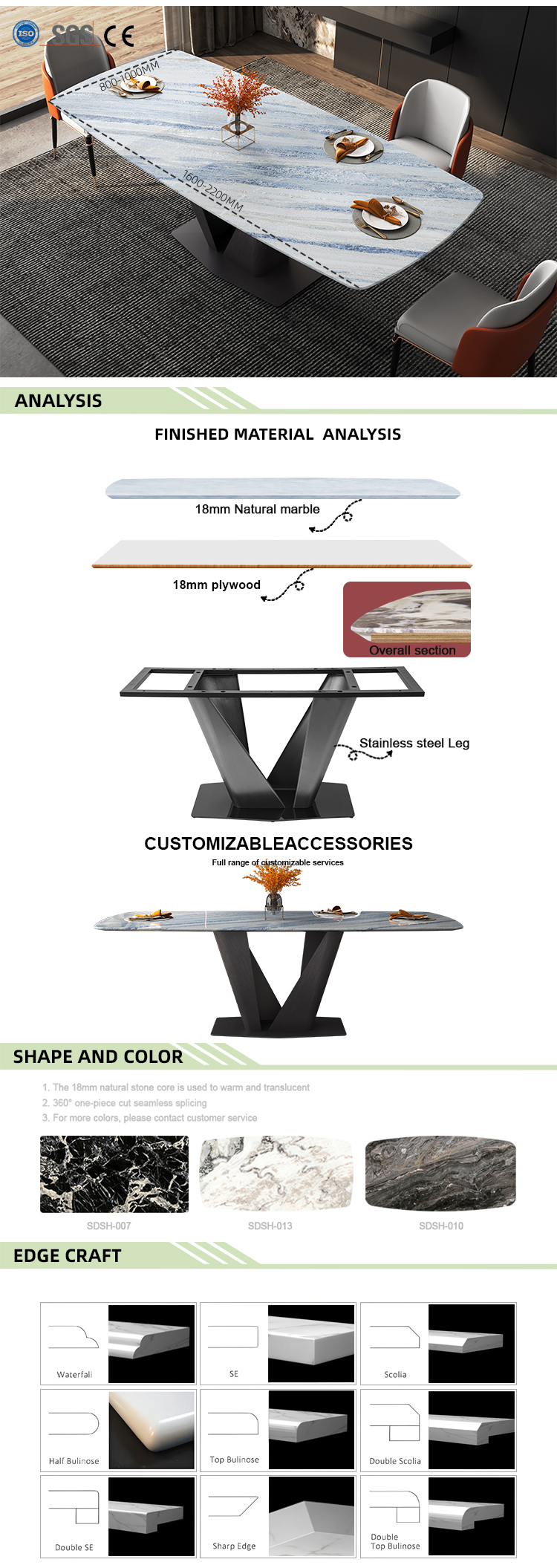 Modern Rectangular 79" Marble Dining Table Black Metal π-Base White Marble Dining Table