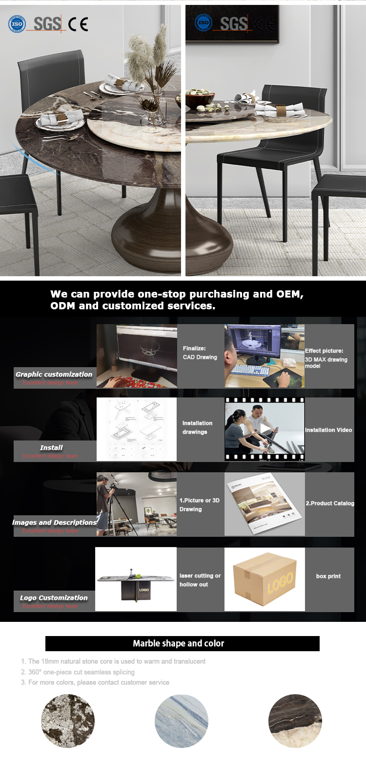 Oriental Design Teardrop Shape 59" Pedestal Dining Table with Rotating Tray for 4-8 People Nordic Style